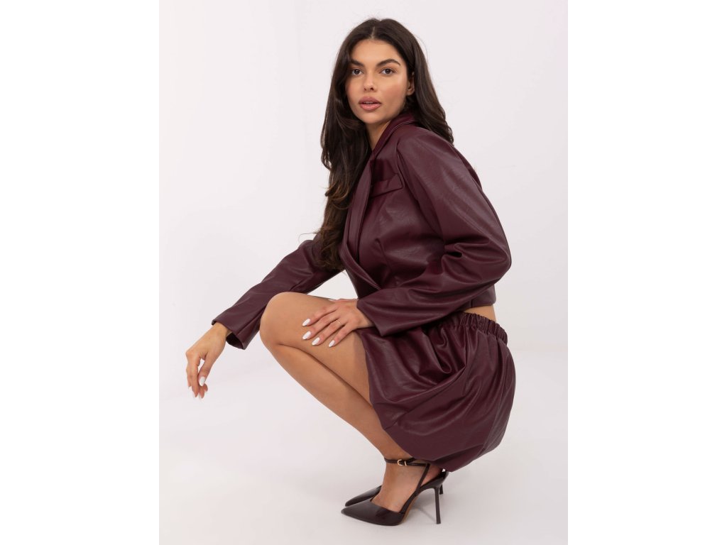 Štýlová mini sukňa typu bombka z ekokože so všitými šortkami. Moderný a odvážny kúsok, ktorý spája trendový dizajn s pohodlím pri nosení.