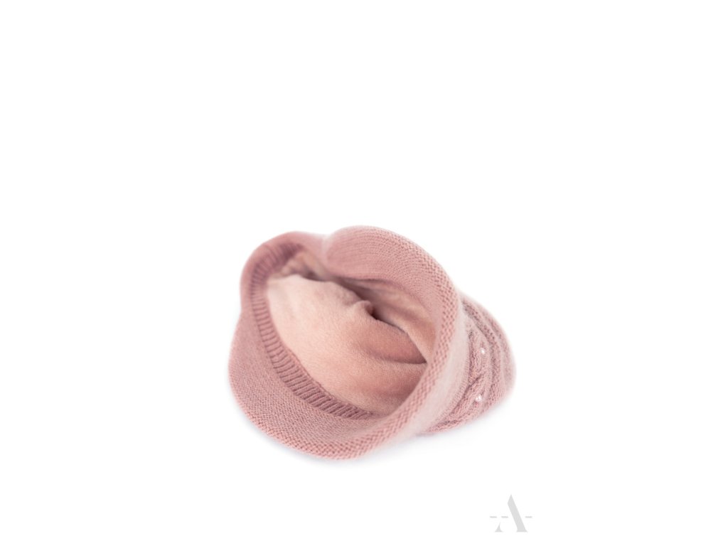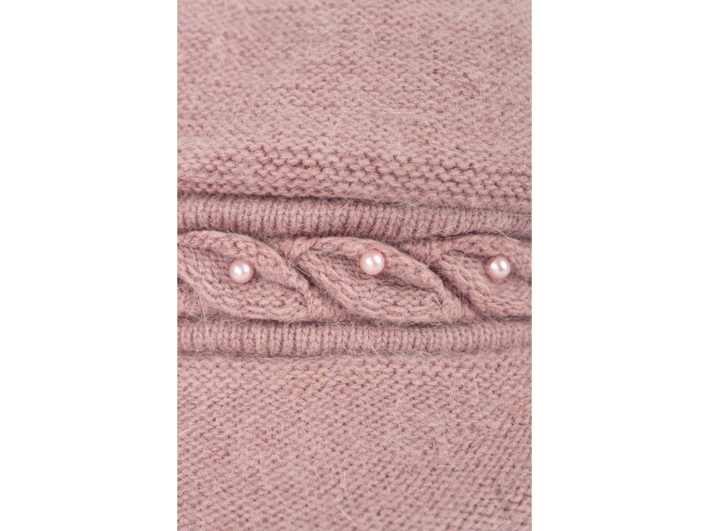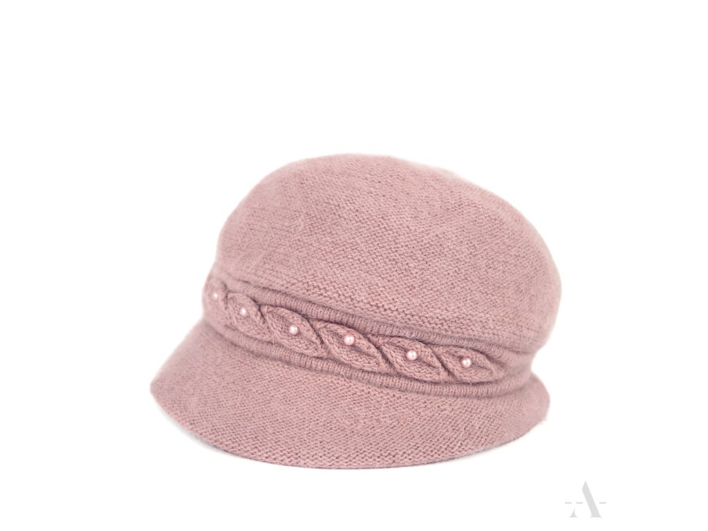 Čiapku zdobí krásny pletený vrkočový pás s perlami, ktorý jej dodáva ženský a jemne romantický charakter. Hodí sa ku kabátu, bunde aj športovo-elegantnému outfitu.