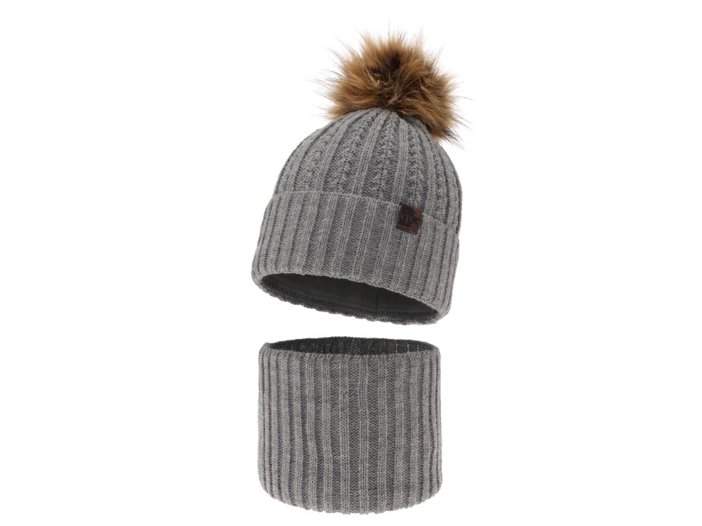 Chlapčenská zimná čiapka s brmbolcom a nákrčník – sivý komplet LARS