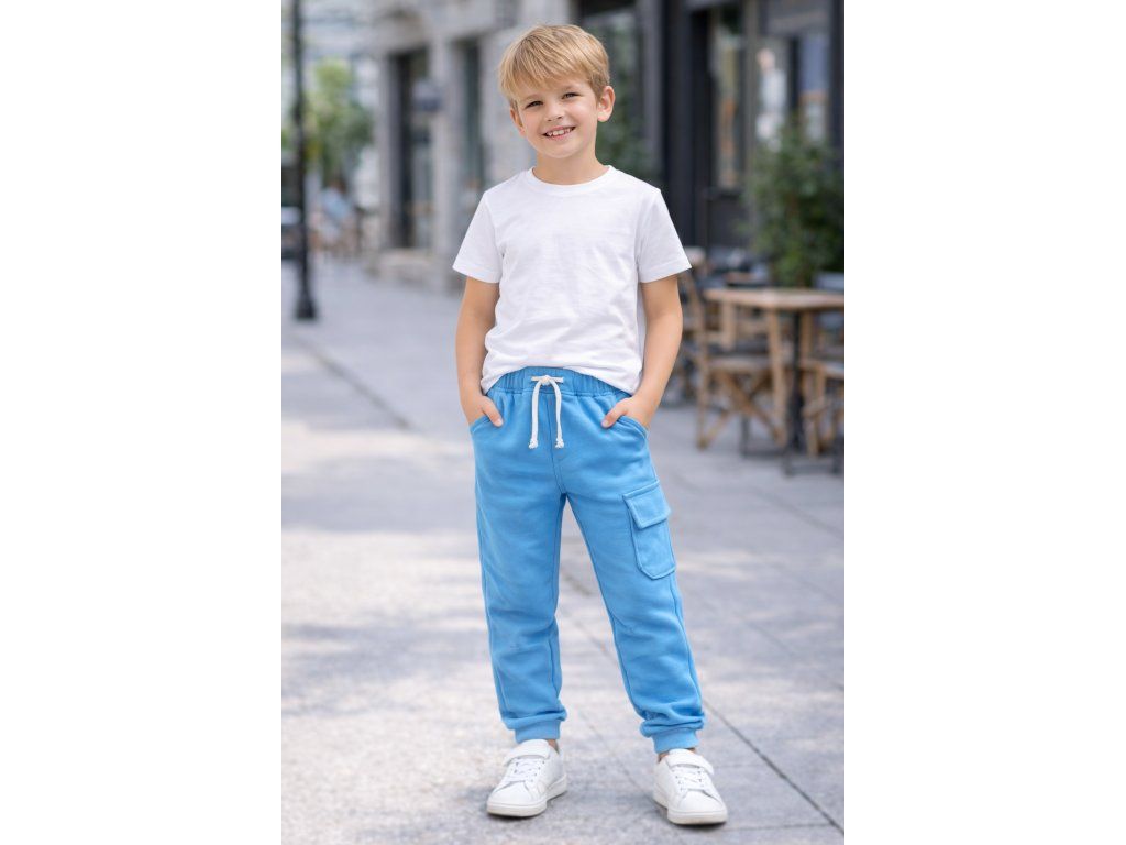 Chlapčenské modré cargo tepláky s elastickým pásom