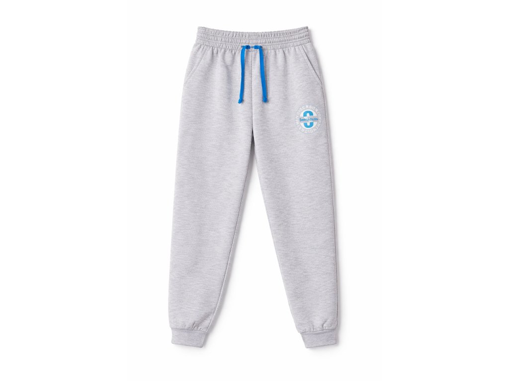 Chlapčenské sivé tepláky s modrou šnúrkou – pohodlné športové tepláky