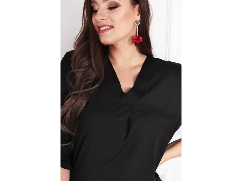 Doprajte si nadčasový kúsok, ktorý v šatníku nesmie chýbať. Táto elegantná čierna blúzka pre moletky je navrhnutá tak, aby lichotila plnším tvarom a zároveň pôsobila vkusne a žensky. Výstrih do V opticky predĺži postavu, zatiaľ čo pohodlný strih zabezpečí celodenné pohodlie. Rolované rukávy s gombíkom dodávajú blúzke ležérny šmrnc – ideálne na bežný deň aj do práce.