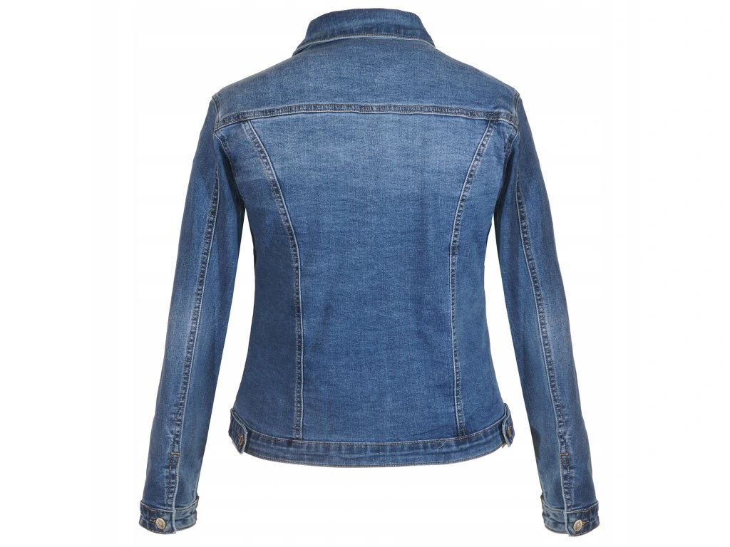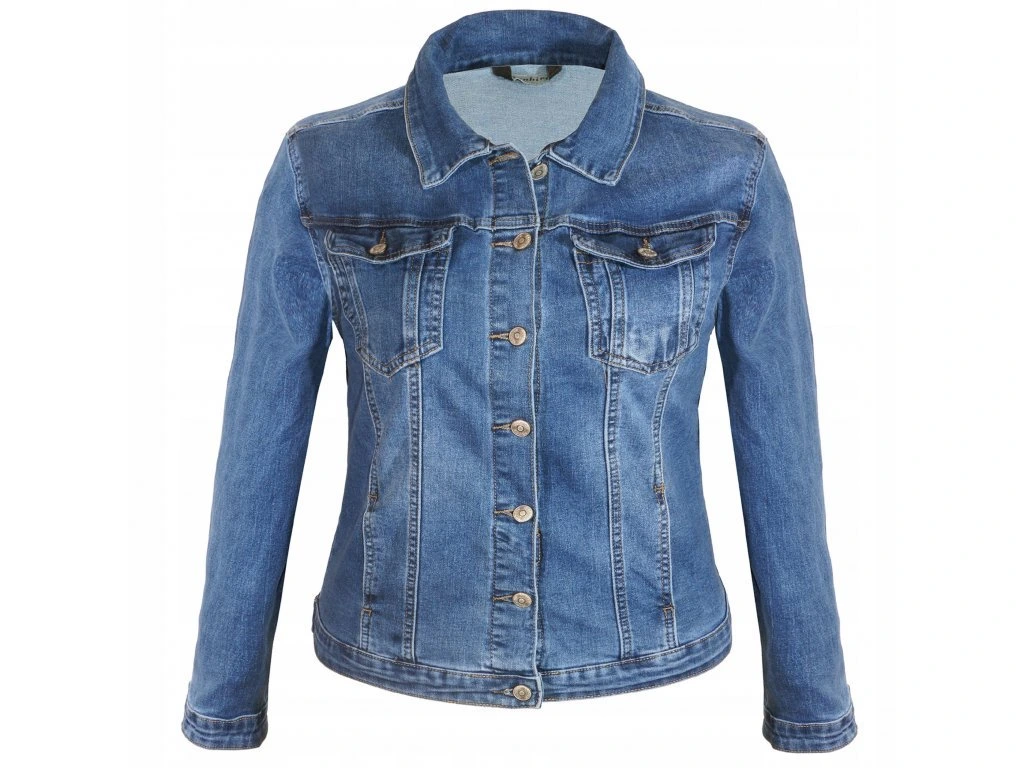Táto dámska rifľová bunda v nadmerných veľkostiach je must-have kúskom v každom šatníku. Klasický denim v stredne modrom odtieni, prešívanie, kovové gombíky a praktické vrecká dodávajú bunde nadčasový vzhľad, ktorý sa hodí ku každému outfitu. Strih je pohodlný a prispôsobený ženám s plnšími tvarmi – neobmedzuje v pohybe a lichotí postave.