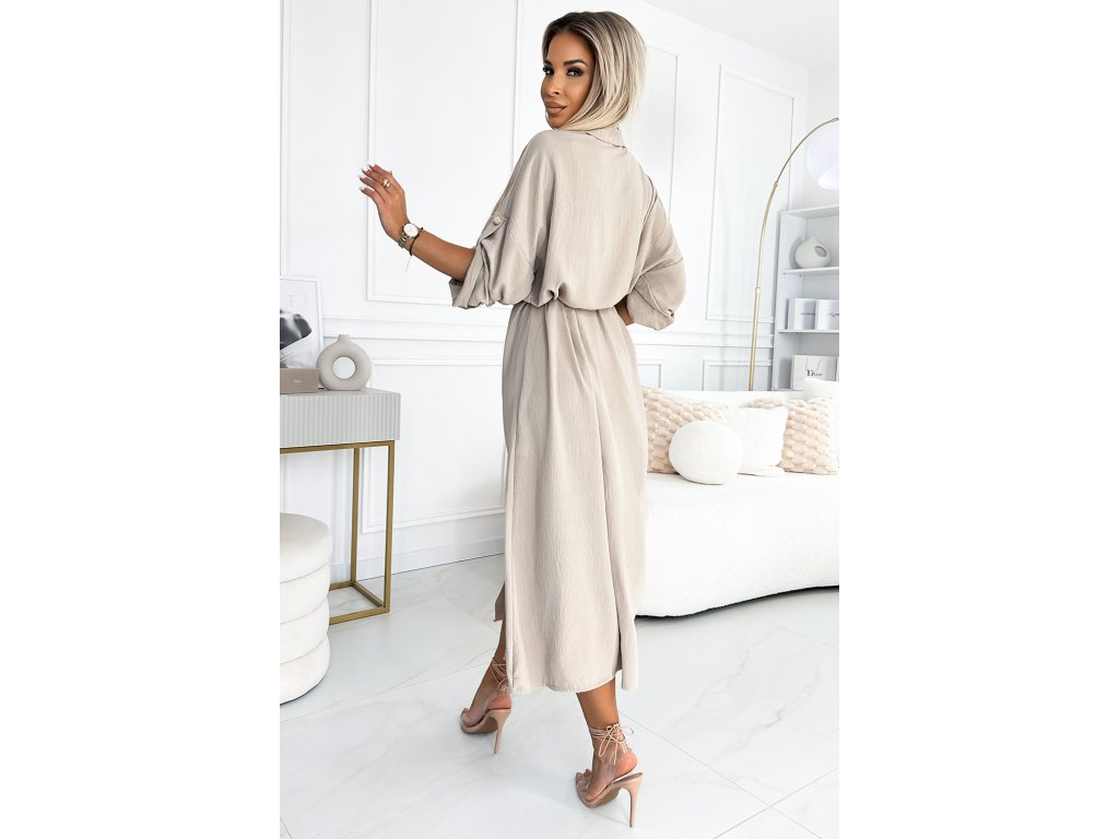 Hľadáte univerzálne, štýlové a pohodlné šaty, ktoré využijete na rôzne príležitosti? Tieto dámske béžové košeľové šaty sú ideálnou voľbou pre modernú ženu. Elegantný béžový odtieň pôsobí neutrálne a nadčasovo, ľahko ich skombinujete so sandálmi na opätku aj s teniskami.