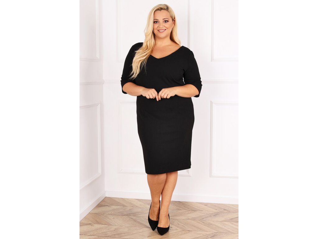 Tieto dámske čierne šaty sú navrhnuté tak, aby spájali eleganciu a pohodlie. Výstrih do V opticky predlžuje postavu a lichotí ženským krivkám, zatiaľ čo 3/4 rukávy a dĺžka po kolená pridávajú šatám univerzálnosť. Pohodlný strih je prispôsobený aj pre plnšie tvary, takže sa v nich budete cítiť sebavedomo a komfortne po celý deň.