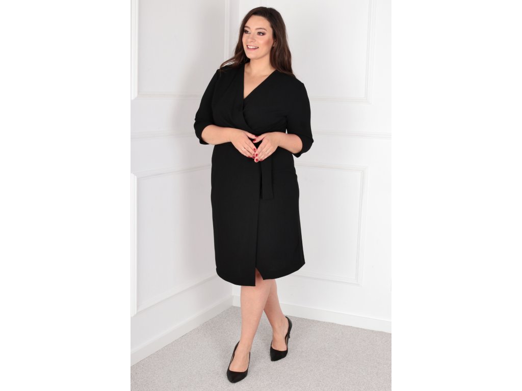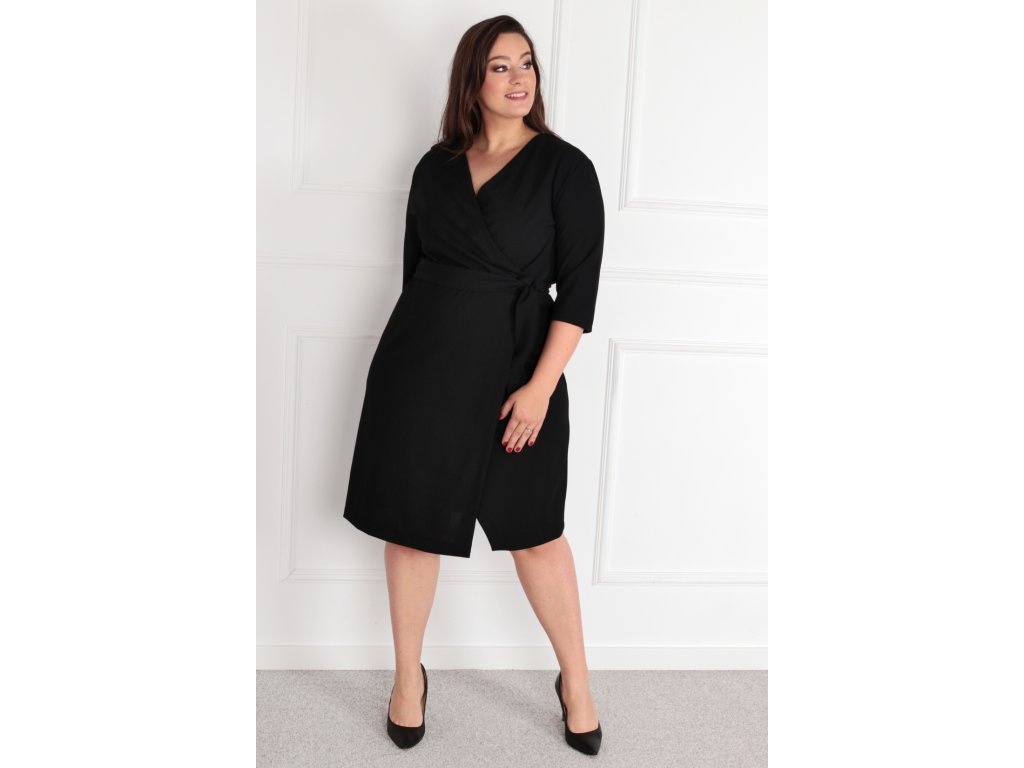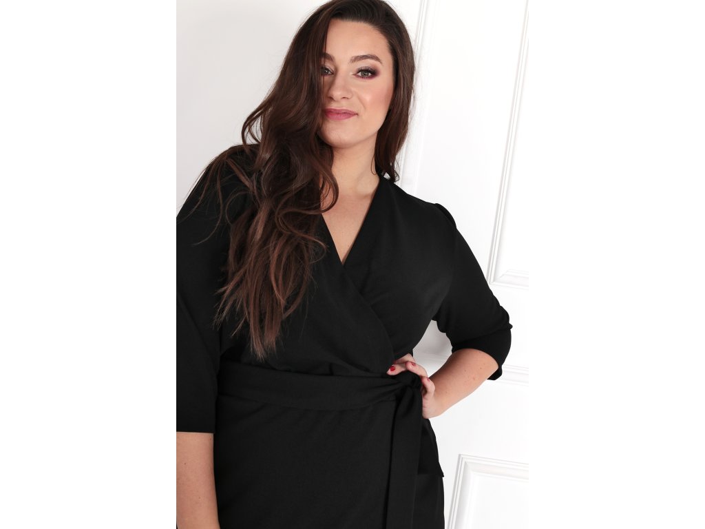 Tieto dámske čierne zavinovacie šaty sú ideálnym kúskom pre ženy s plnšími tvarmi, ktoré chcú vyzerať elegantne a cítiť sa komfortne. Zavinovací strih s viazaním v páse krásne zvýrazní ženské krivky a opticky zoštíhľuje postavu.