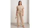 Veľkosť: L/XL Elegantný dvojdielny komplet v béžovej farbe s viazaním v páse a širokými...