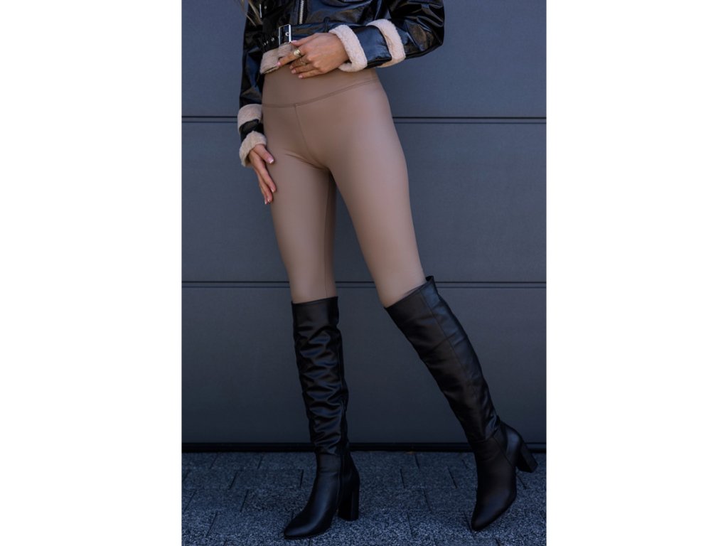 Tieto dámske oteplené legíny z eko kože v elegantnej béžovej farbe sú skvelou voľbou pre chladnejšie obdobie. Kvalitný materiál s jemnou vnútornou podšívkou príjemne zahreje a zároveň perfektne obopne postavu. Vysoký pás lichotí postave a dodáva pocit komfortu. Legíny sú ideálne v kombinácii s oversize svetrom, kabátom či bundou a vysokými čižmami – vytvárajú moderný a ženský outfit na každý deň.