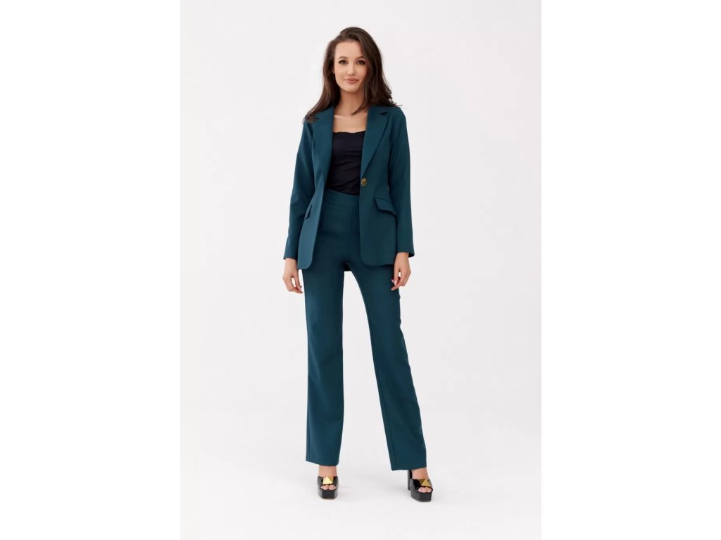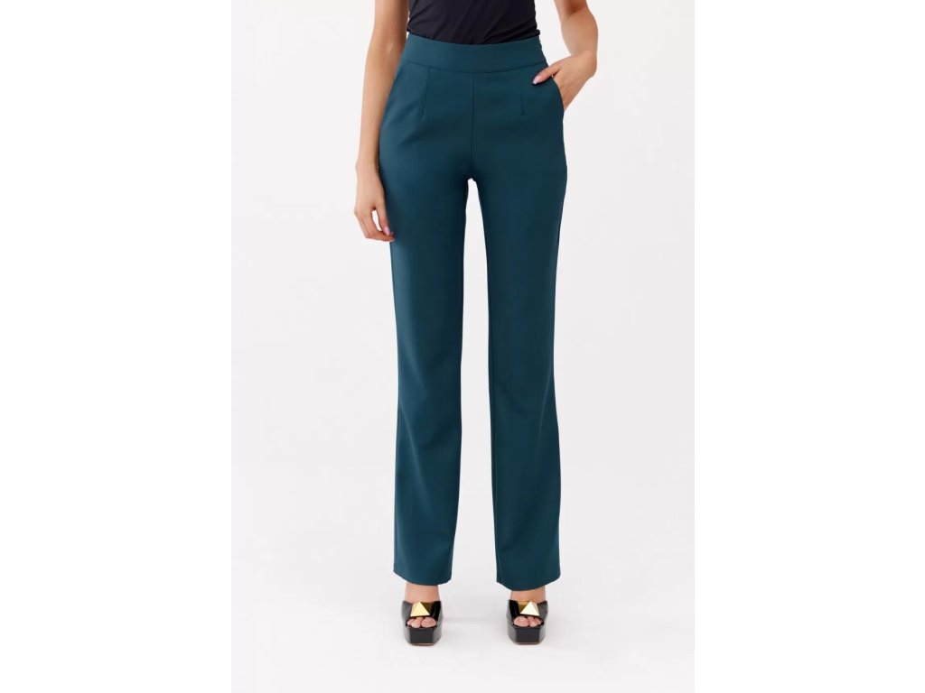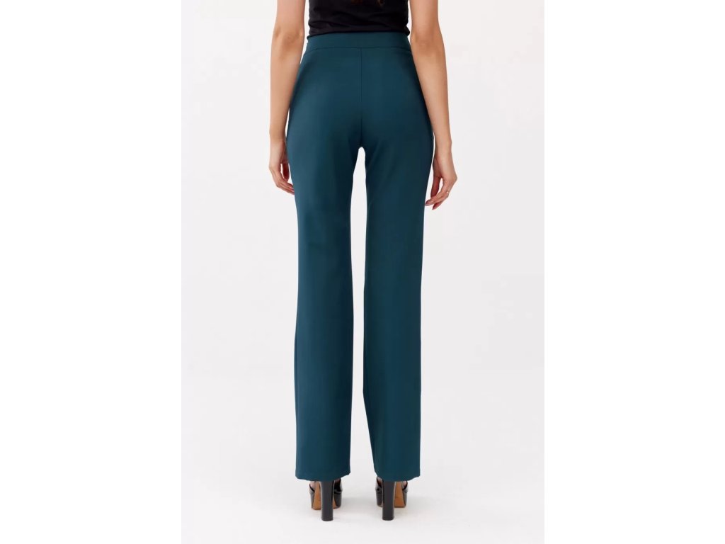 Tieto dámske elegantné nohavice v krásnej petrolejovej farbe vynikajú svojím nadčasovým dizajnom. Rozšírený strih poskytuje maximálne pohodlie, opticky predlžuje nohy a pôsobí veľmi žensky a elegantne. Vyšší pás pekne zvýrazňuje siluetu a zaisťuje komfortné nosenie. Kvalitný, mierne elastický materiál je vhodný na každodenné nosenie aj formálnejšie príležitosti. Kombinujte ich s blúzkou, sakom a lodičkami pre dokonalý pracovný look alebo ich zlaďte s pohodlným svetrom na voľný čas.