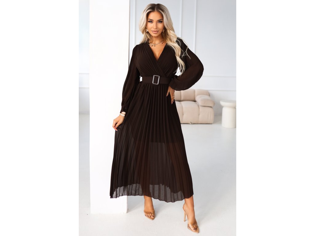 Dámske plisované maxi šaty s opaskom a dlhým rukávom – viac farieb 414-10