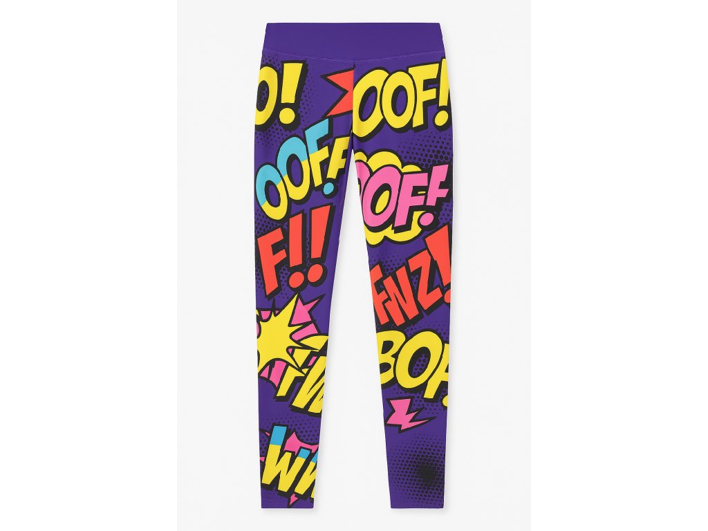 Rozžiarte svoj športový outfit originálnymi dámskymi legínami s výrazným komiksovým vzorom v žiarivých farbách. Spojenie polyesteru a elastanu zabezpečuje maximálne pohodlie, pružnosť a priedušnosť, takže sa budete cítiť komfortne pri každom pohybe.
