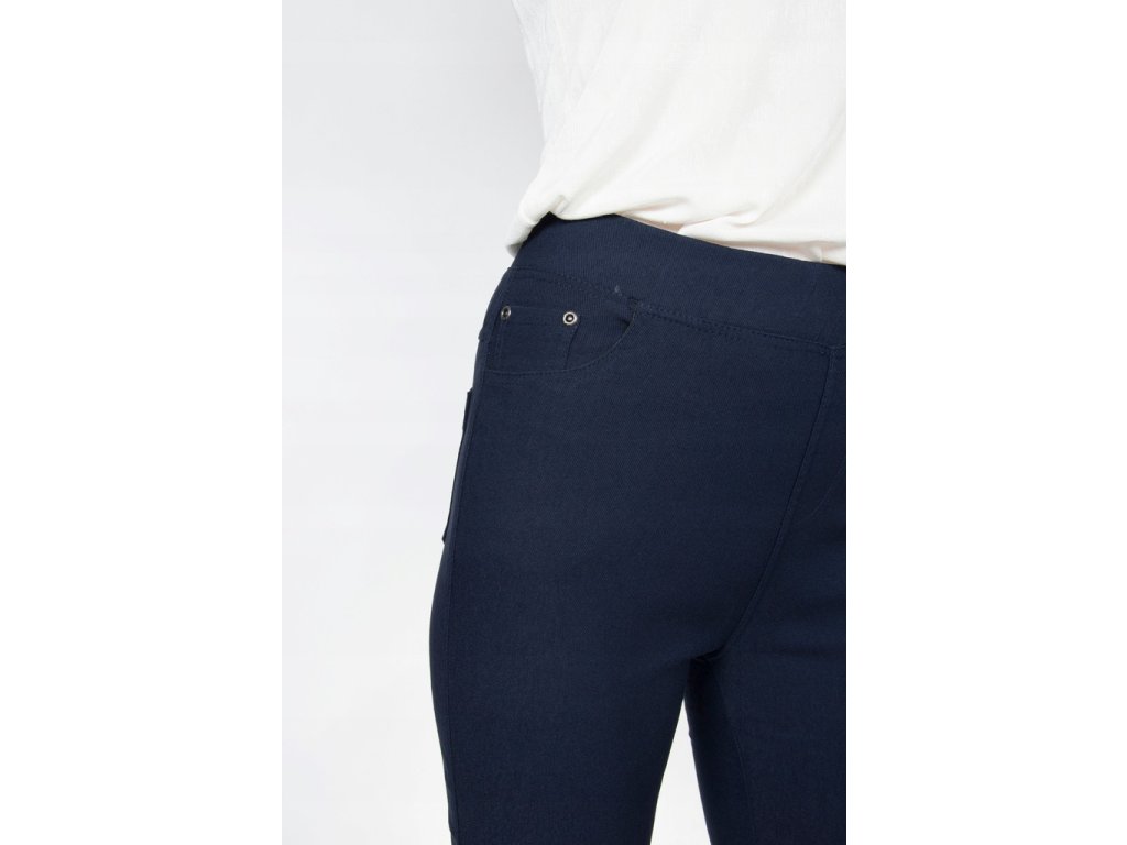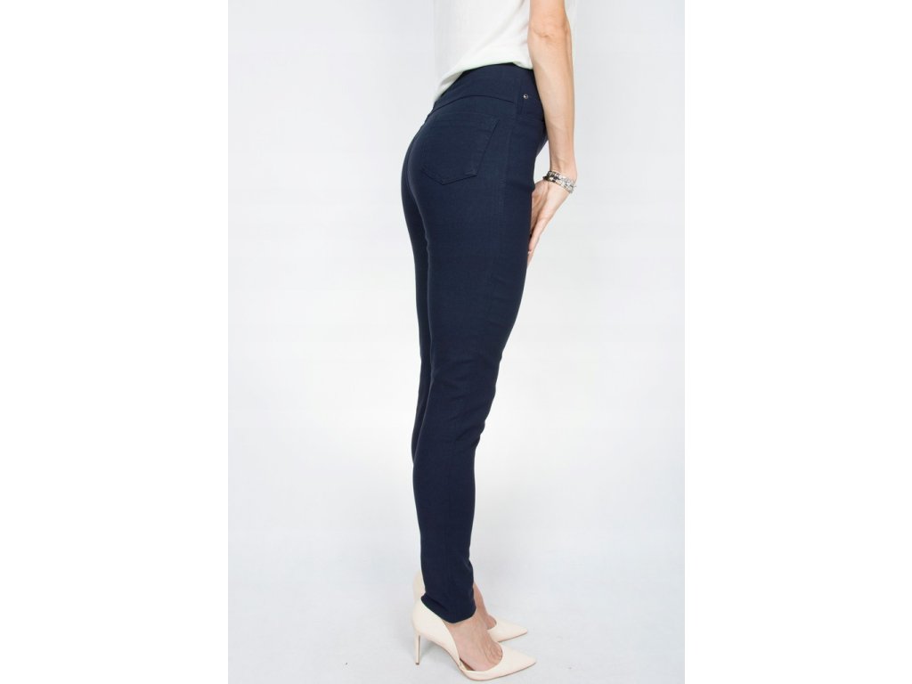 Dámske tmavomodré a čierne nohavice v modernom slim fit strihu sú ideálnou voľbou pre každodenný elegantný outfit aj pracovné prostredie. Vyšší pás krásne zvýrazní postavu a elastický materiál zabezpečí pohodlie počas celého dňa. Praktické zadné vrecká dodávajú modelu ležérny štýl. Kombinujte ich s elegantnou blúzkou alebo jednoduchým topom a lodičkami pre nadčasový vzhľad.