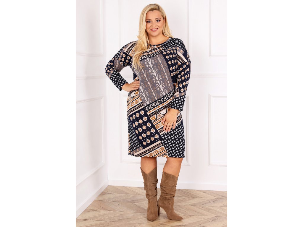 Tieto dámske vzorované šaty pre moletky spájajú eleganciu a komfort v jednom. Voľnejší strih lichotí postave a poskytuje maximálne pohodlie počas celého dňa. Dlhé rukávy z nich robia univerzálny kúsok vhodný na chladnejšie obdobia, zatiaľ čo originálny patchwork vzor pôsobí štýlovo a moderne.