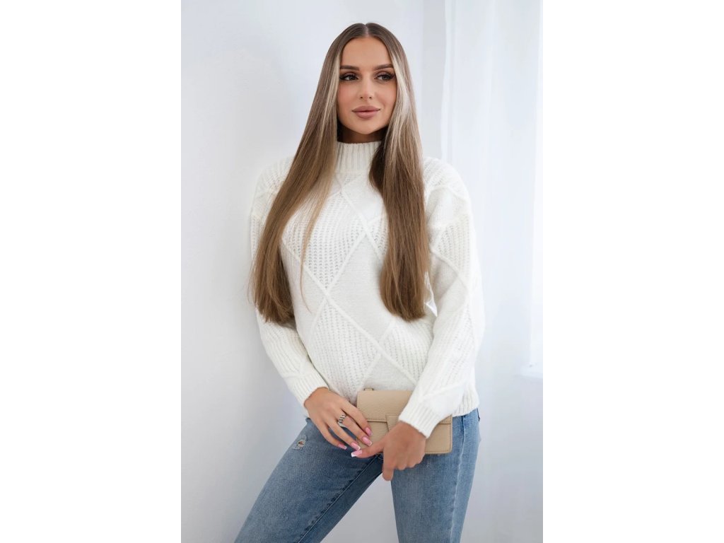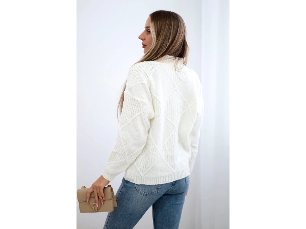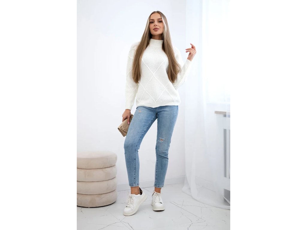Dámsky biely pulóver so vzorom – elegantný pletený sveter