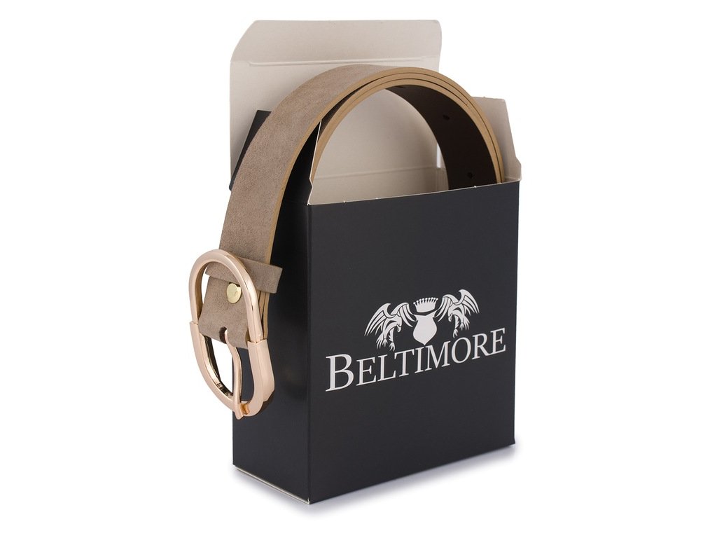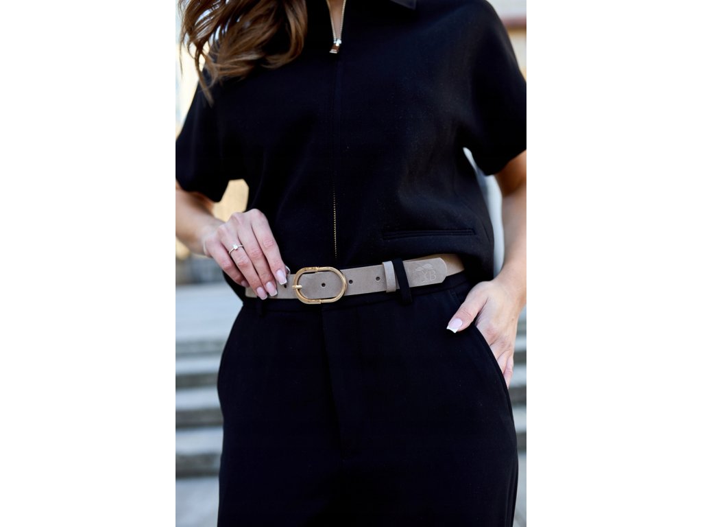 Dámsky kožený opasok Beltimore – nude semišový so zlatou prackou
