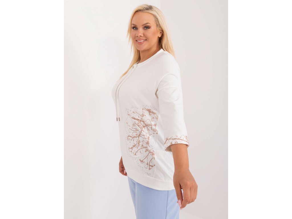 Topík s potlačou a kamienkami ,3/4 rukávy ukončené manžeto s potlačou ,zaujímavo riešený priekrčník s vtiahnuto šnúrkou.