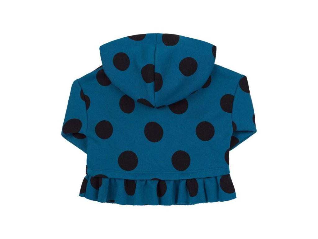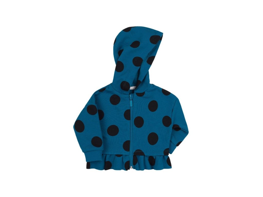 Komplet pozostáva z mikiny a teplákov. Mikina je zapínacia na zips, takže ju vaše dieťa ľahko oblečie alebo vyzlečie. Kapucňa poskytuje dodatočnú ochranu a teplo v chladnejších dňoch, zatiaľ čo volánik na spodnej časti dodáva mikine šmrnc. Tepláky sú vybavené praktickými vreckami, kde môže vaše dieťa uchovať svoje malé poklady. Ukončené sú patentom, čo zaisťuje, že budú pevne držať na mieste.