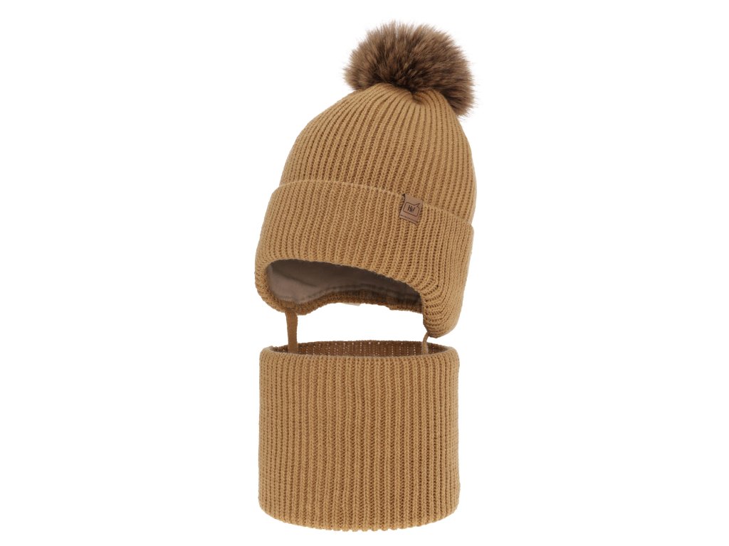 Detský zimný komplet čiapka a nákrčník camel s brmbolcom ZIKO