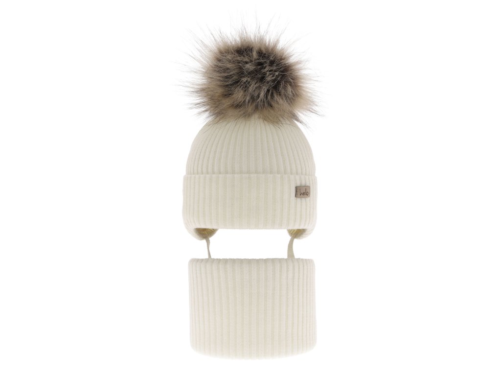 Detský zimný set čiapka s brmbolcom a nákrčník – ecru BRIA