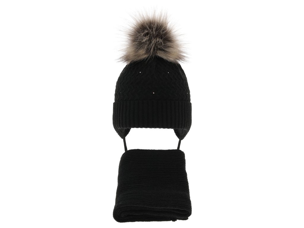Detský zimný set čiapka a šál s kamienkami – čierny, fleecová podšívka Zelta