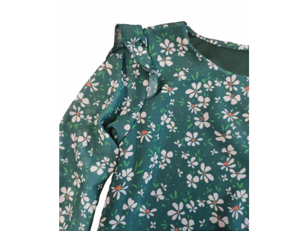 Materiál, z ktorého je blúzka vyrobená, je ľahký šifón, ktorý je príjemný na dotyk a zároveň poskytuje dostatočnú vzdušnosť a pohodlie počas celého dňa. Voľný strih do tvaru "A" zabezpečuje, že blúzka pekne padne a neobmedzuje pohyb, čo je ideálne pre aktívne dievčatká, ktoré sa neustále hrajú a objavujú svet okolo seba.
