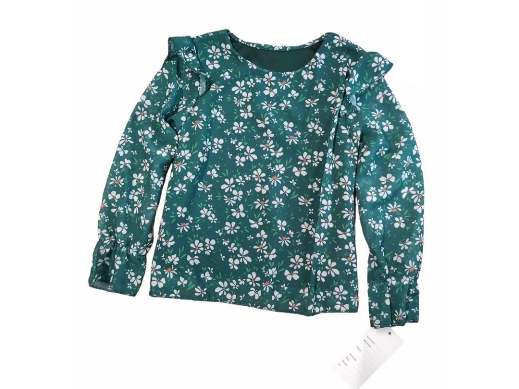 Dievčenská blúzka NATY prichádza v nádhernom dizajne s kvetovanou celoplošnou potlačou, ktorá je ako vziatá zo záhrady plnej kvitnúcich kvetov. Každý detail od rukávov ukončených do gumičiek po volániky pripomína jemnú a hravú estetiku, ktorá dokonale dopĺňa detskú nevinnosť a radosť.
