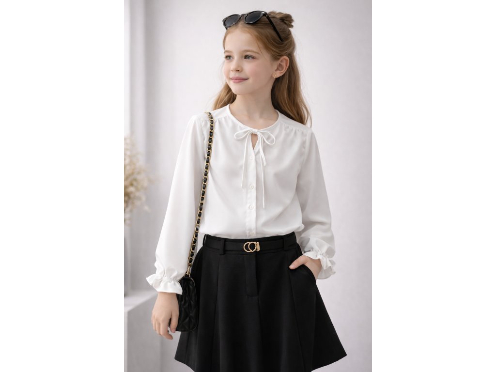 Táto dievčenská biela blúzka je navrhnutá s dôrazom na eleganciu, pohodlie a univerzálne využitie. Vďaka čistému strihu a jemným detailom pôsobí slávnostne, no zároveň je vhodná aj na bežné nosenie.