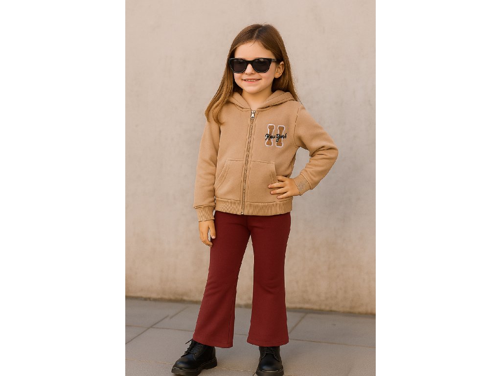Zateplená dievčenská mikina New York v béžovej farbe je ideálnou voľbou na jesenné a zimné obdobie. Vyrobená z kvalitného bavlneného materiálu, ktorý je mäkký, priedušný a príjemný na dotyk.
