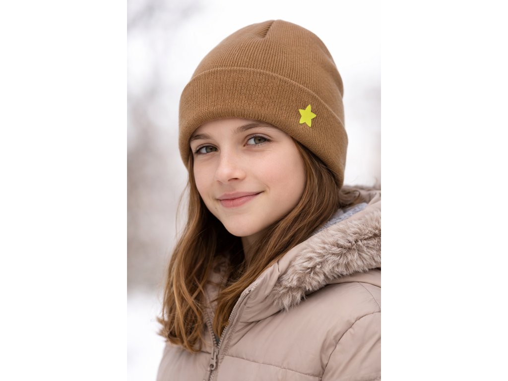 Dievčenská zimná čiapka Estrela camel – štýlová s hviezdičkou