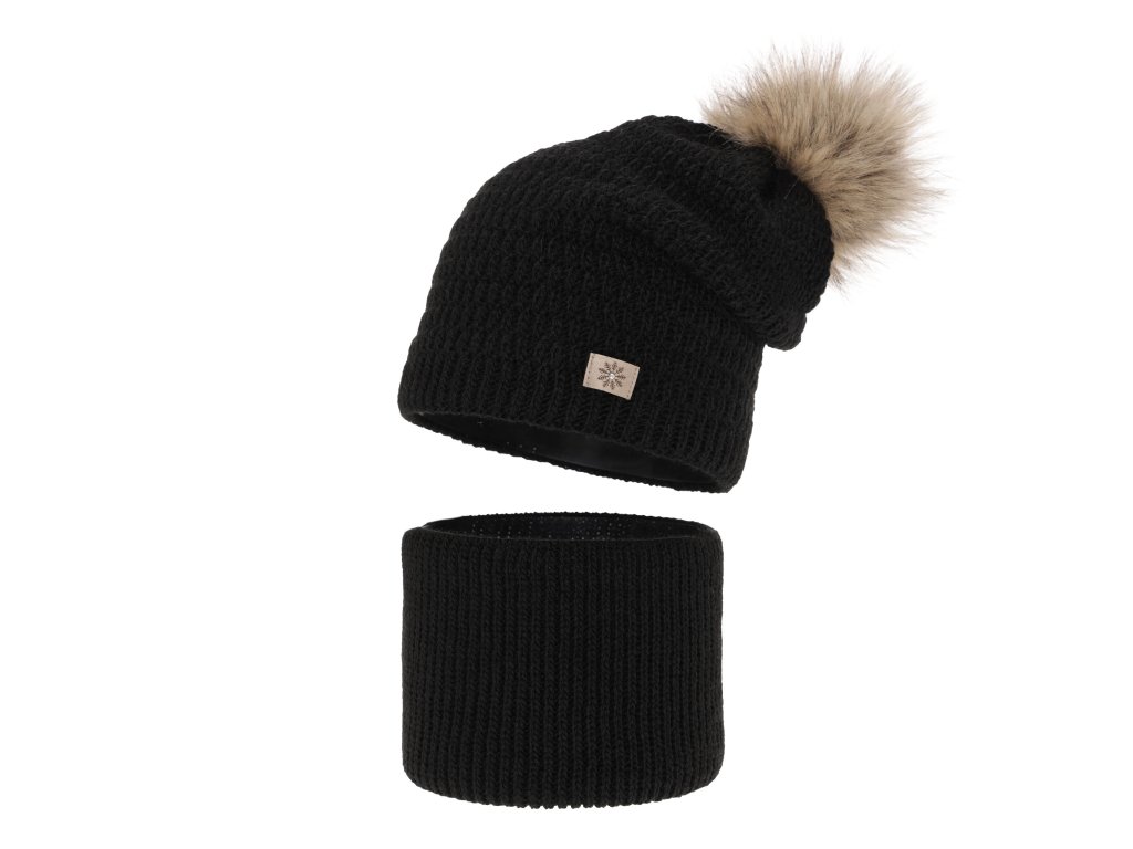Dievčenská zimná čiapka s brmbolcom – čierna Germina