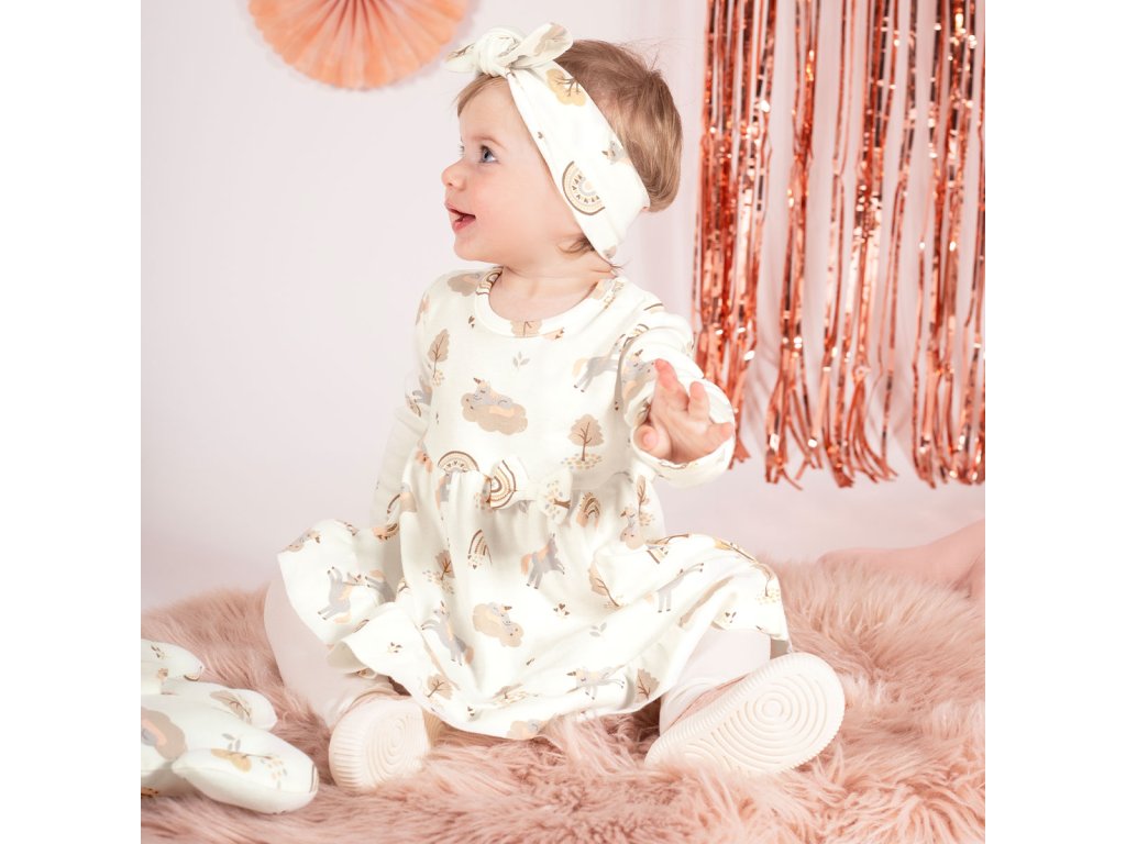Detské šaty NICOL s motívom jednorožcov – krémové