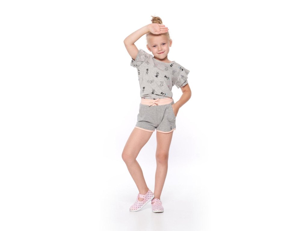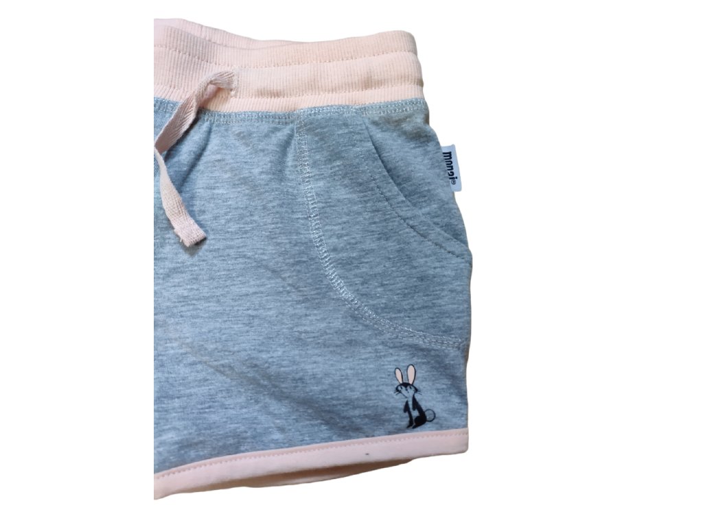 Dievčenské šortky. Majú dve praktické vrecká. Ideálne na teplé letné dni. Skvele sa hodia k tričku a boxerkám. Vysoký podiel bavlny zaručuje pohodlie pri nosení. Vrecká sú zdobené potlačou zajačika.