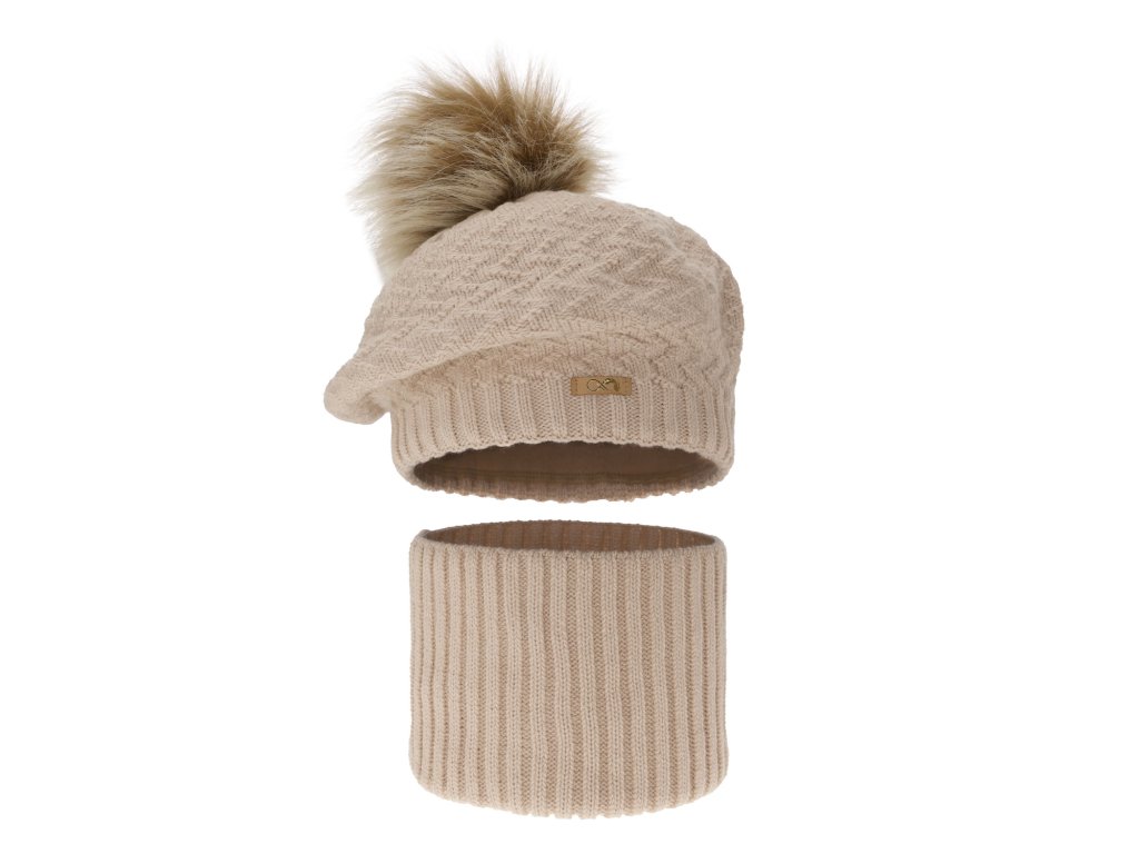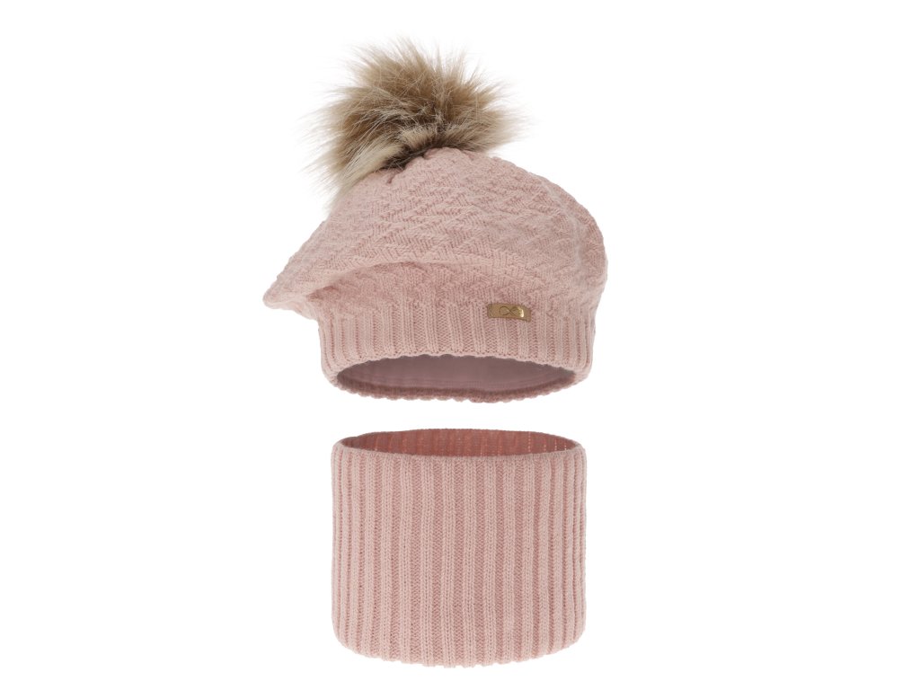 Dievčenský zimný set – baretka s brmbolcom a pletený nákrčník Atene