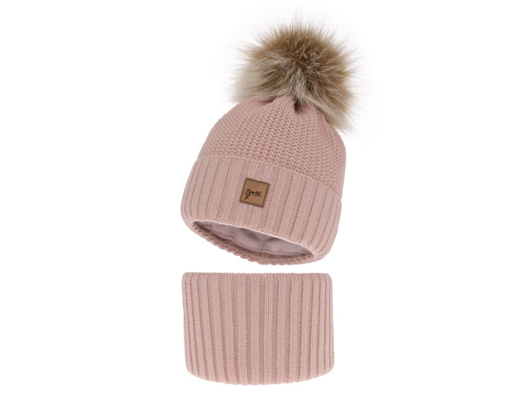 Štýlový dievčenský zimný komplet pozostáva z pletenej čiapky s brmbolcom a nákrčníka. Vyrobený z kvalitného akrylu s mäkkou fleecovou podšívkou pre maximálne teplo a pohodlie počas zimy.