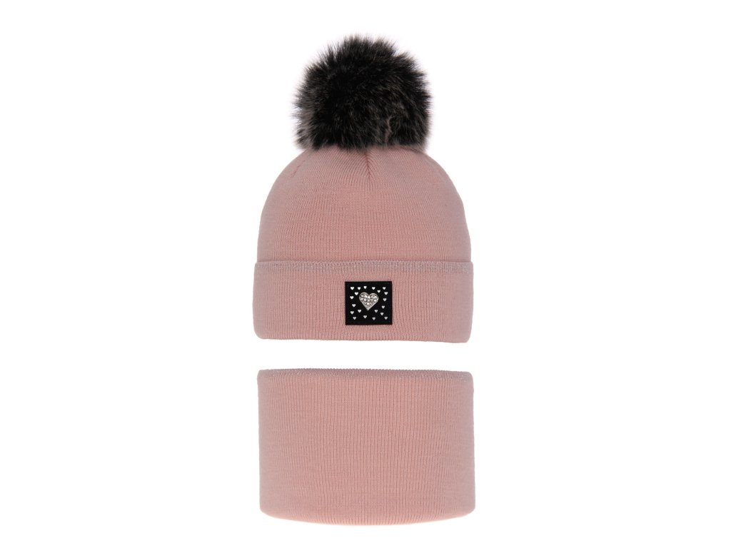 Dievčenský zimný set – čiapka s brmbolcom a nákrčník Sendi