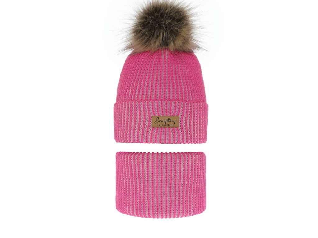 Dievčenský zimný set – čiapka s brmbolcom a nákrčník ružový FLORIDA