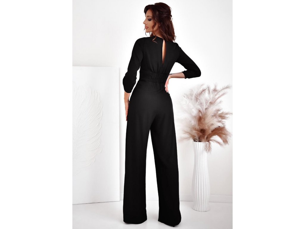 Elegantný čierny overal s dlhými nohavicami a 3/4 rukávom – veľ. 34