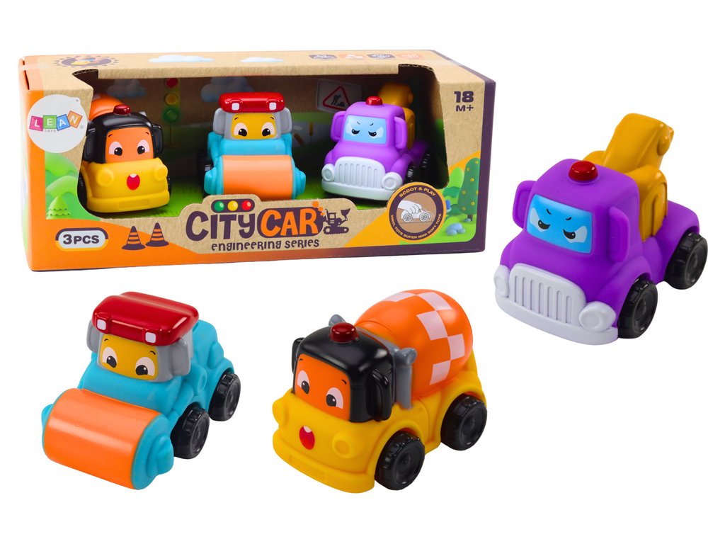 Každé autíčko má milú, usmievavú tváričku, ktorá okamžite upúta pozornosť a povzbudzuje dieťa do hry. Autíčka fungujú na jednoduchý pohyb pohnutím dopredu, takže ich dokáže rozhýbať aj malé dieťa. Pri hre si deti prirodzene rozvíjajú jemnú motoriku, koordináciu ruka-oko a fantáziu.