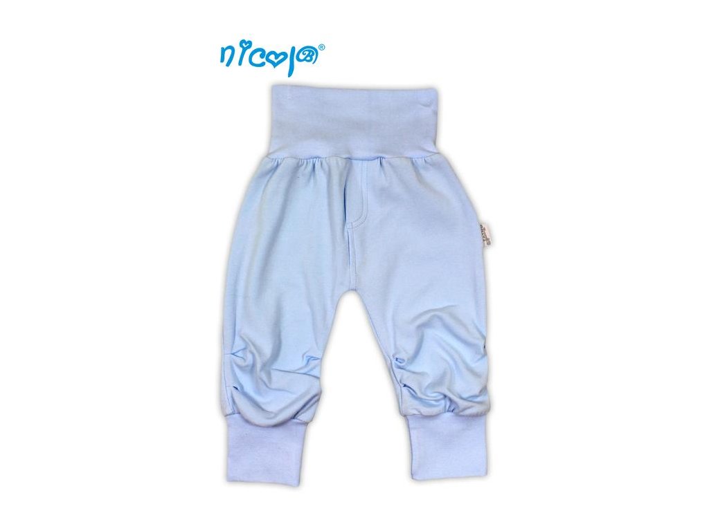 Pohodlné bábätkovské tepláčiky vo veľkosti 52 so širokým vysokým pásom. Mäkký materiál, skladanie na kolienkach a ideálne pre novorodencov.