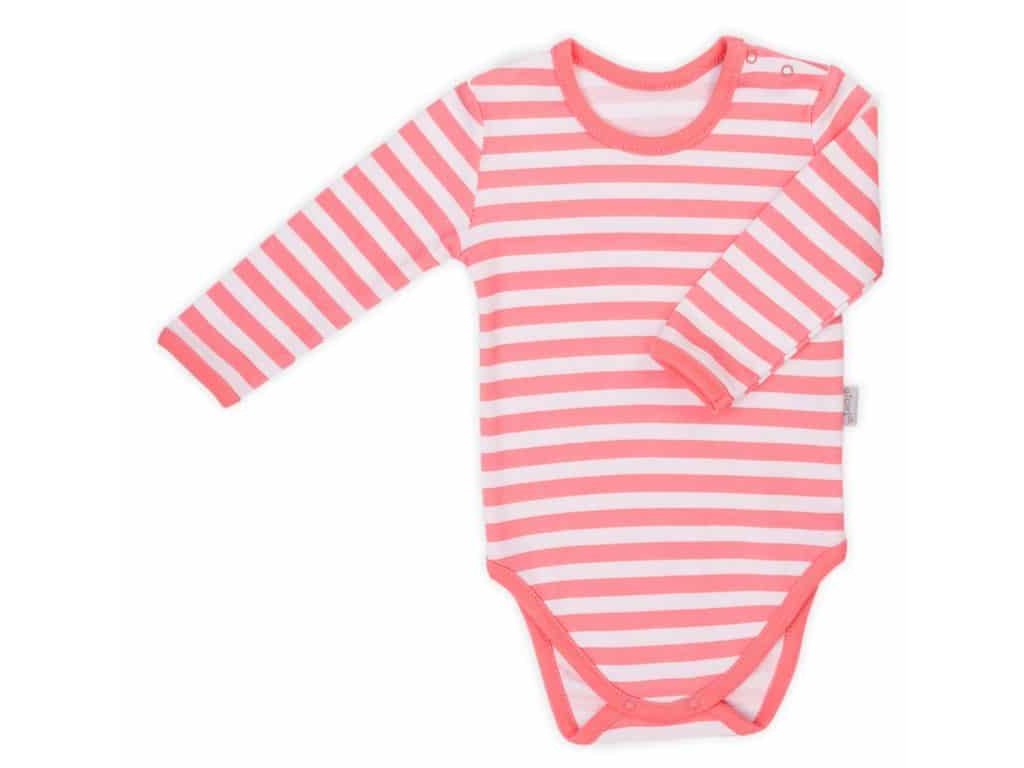 Kojenecké body s dlhým rukávom v bielej farbe s korálovými prúžkami.