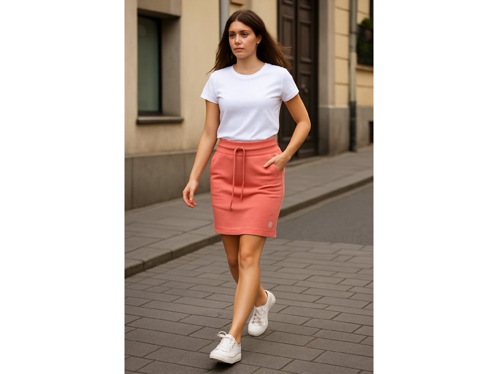Táto korálová dámska sukňa vo veľkosti XS je ideálnym spojením pohodlia a mestského štýlu. Mäkký materiál zabezpečí komfort aj počas celého dňa, elastický pás so šnúrkou umožní prispôsobiť si obvod podľa potreby a praktické vrecká dodávajú sukni moderný a uvoľnený vzhľad. Trendová korálová farba oživí každý outfit a ľahko ju zladíte s jednoduchým tričkom či elegantnejšou blúzkou. Perfektná voľba na prechádzky mestom, stretnutia s priateľmi aj bežné dni, keď sa chcete cítiť štýlovo a pohodlne.