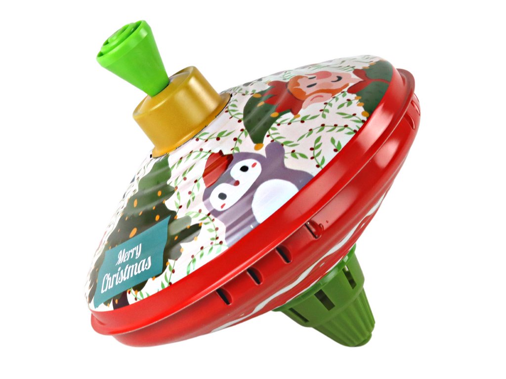 Točiaca hračka je vyrobená z pevného kovu, vďaka čomu je odolná a môže slúžiť dlhé roky. Veselé ilustrácie so Santom, snehuliakom, sobíkom a ďalšími sviatočnými motívmi mu dodávajú jedinečný vianočný vzhľad. Stačí ho jemne zatlačiť alebo roztočiť a bázmek sa začne rýchlo točiť, žiariť farbami a priťahovať pozornosť detí.