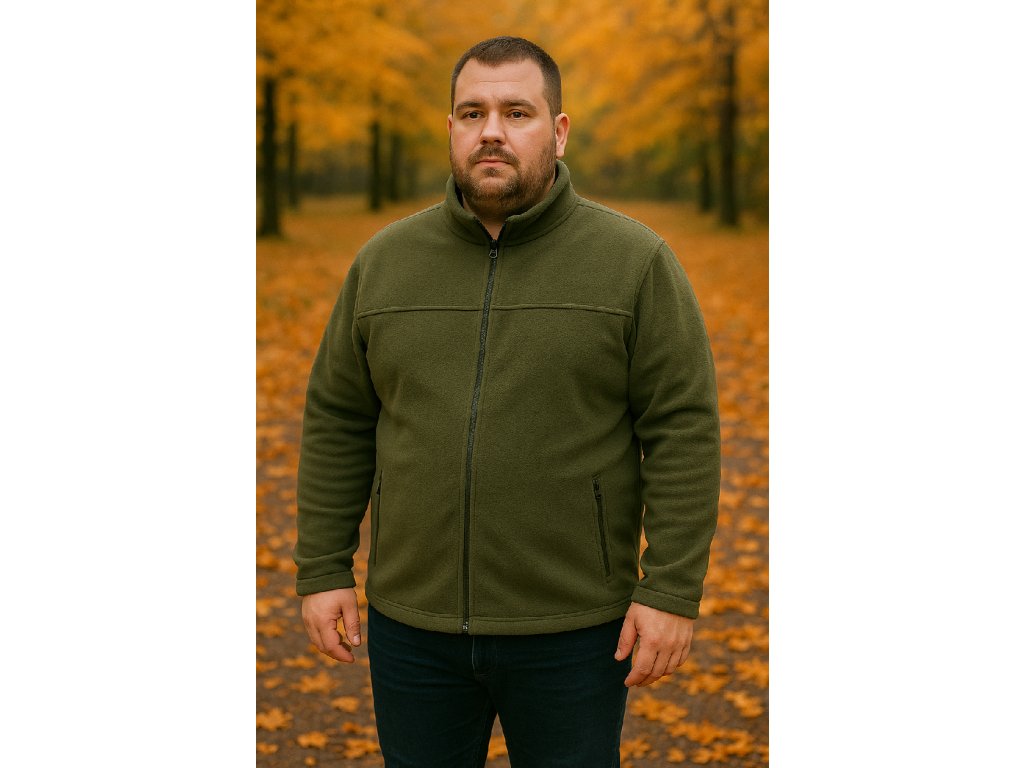 Táto pánska flísová bunda v khaki farbe je ideálnym spoločníkom pre chladnejšie jesenné dni. Vyrobená z kvalitného flísového materiálu, ktorý je mäkký, priedušný a výborne drží teplo.