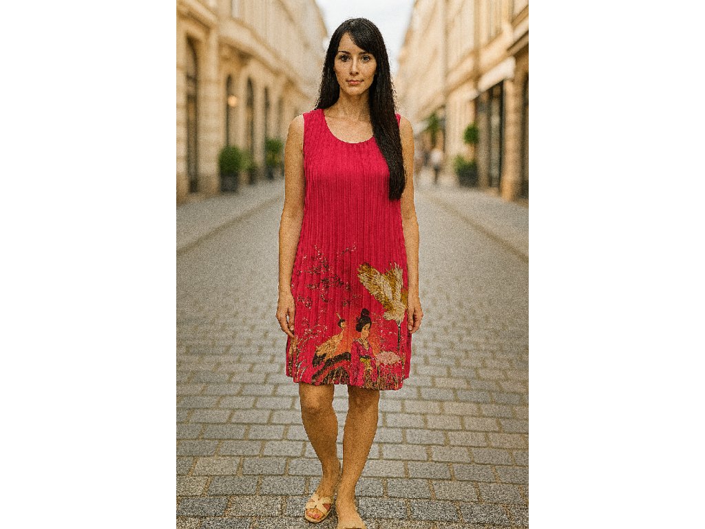 Oživte svoj letný šatník štýlovými plisovanými šatami MGmoda.sk vo výraznej farbe fuchsia. Šaty zaujmú nielen sviežim odtieňom, ale aj originálnou potlačou s ázijským motívom gejše, kvetov a žeriavov, ktorý dodá vášmu outfitu jedinečný charakter.