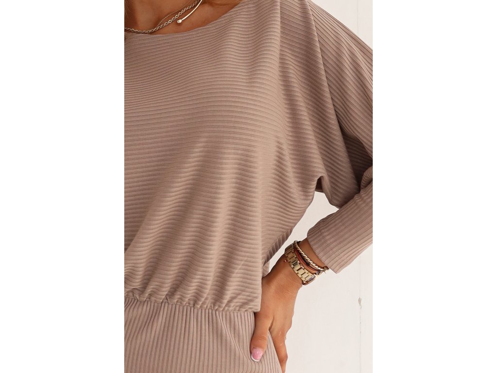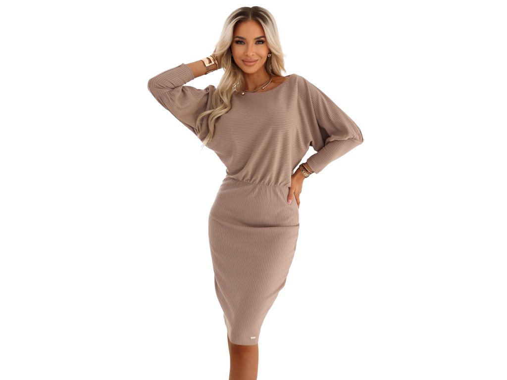 Rebrované midi šaty s dlhým rukávom 399-4