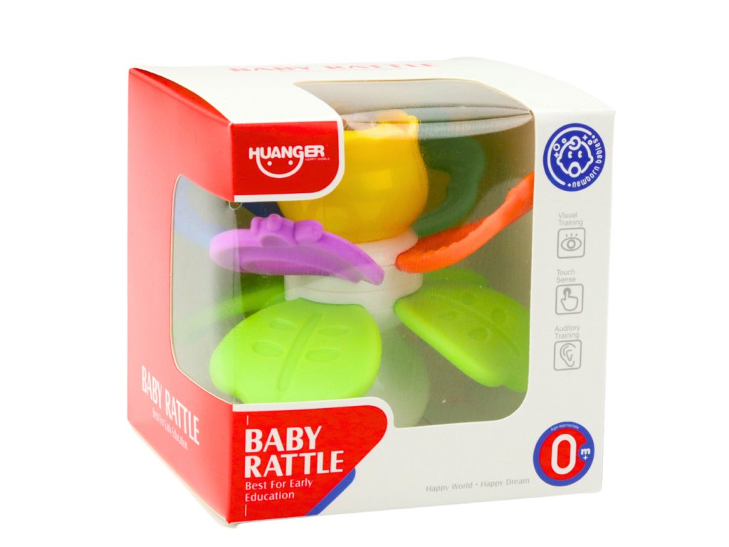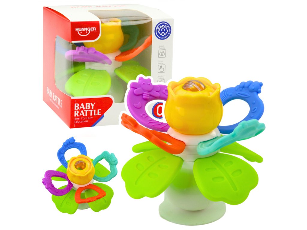 V strede kvietku sa nachádza otáčacia časť, ktorá povzbudzuje bábätko k chytaniu a pohybom ruky. Farebné, mäkké okvetné lístky sú vyrobené z pružného materiálu vhodného na žužlanie – ideálne počas zúbkovania.