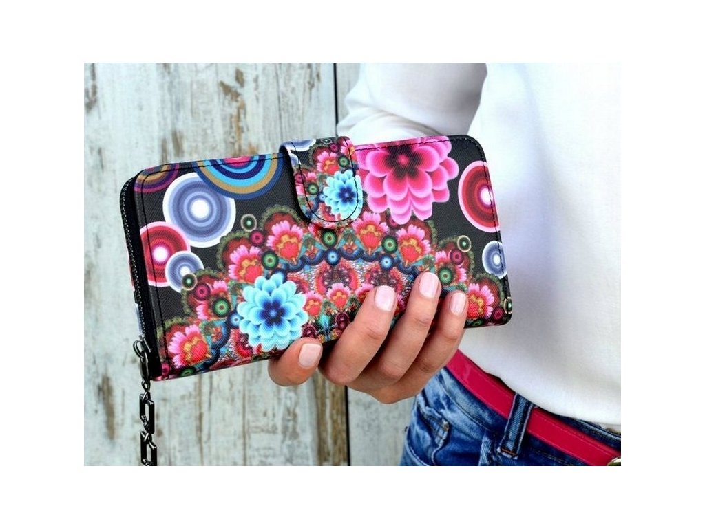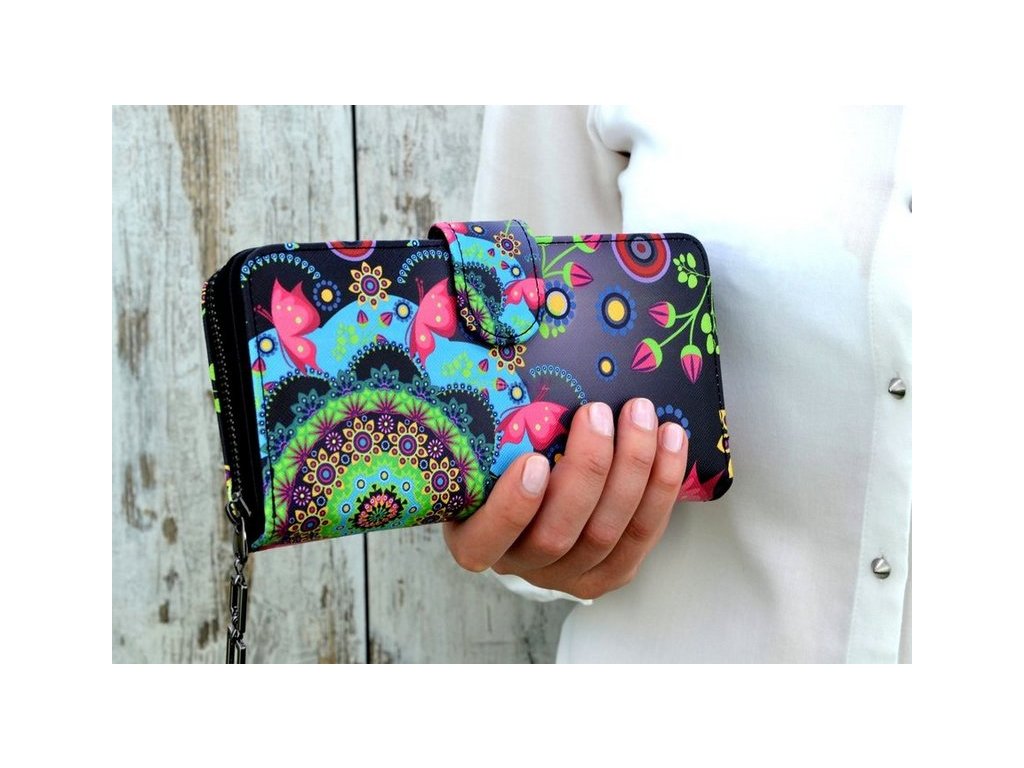 Táto veľká dámska peňaženka z kvalitnej eko kože je ideálnym doplnkom pre ženy, ktoré oceňujú praktickosť aj originálny dizajn. Peňaženka ponúka dostatok priestoru pre všetky vaše karty, hotovosť, mince a dokonca aj mobilný telefón. Uzatvára sa bezpečným zipsom a patentom. Rôzne farebné vzory dodávajú peňaženke štýlový a moderný vzhľad – či už preferujete pestrofarebné motívy alebo elegantné mandaly, táto peňaženka bude výrazným módnym prvkom.