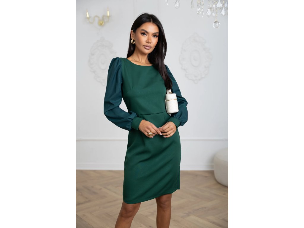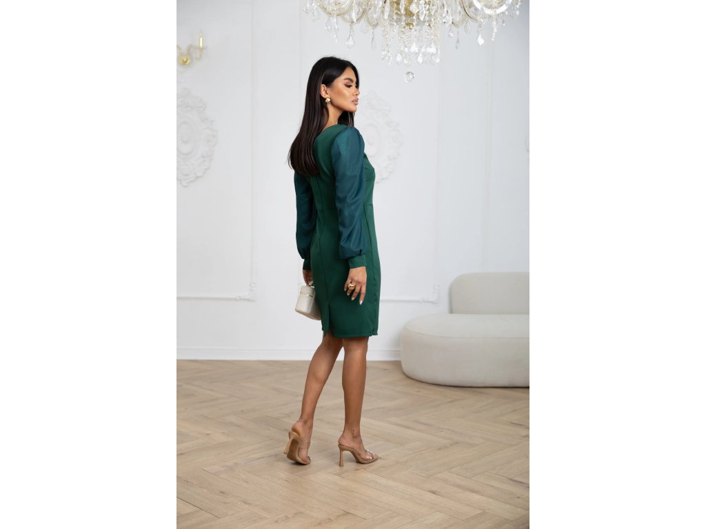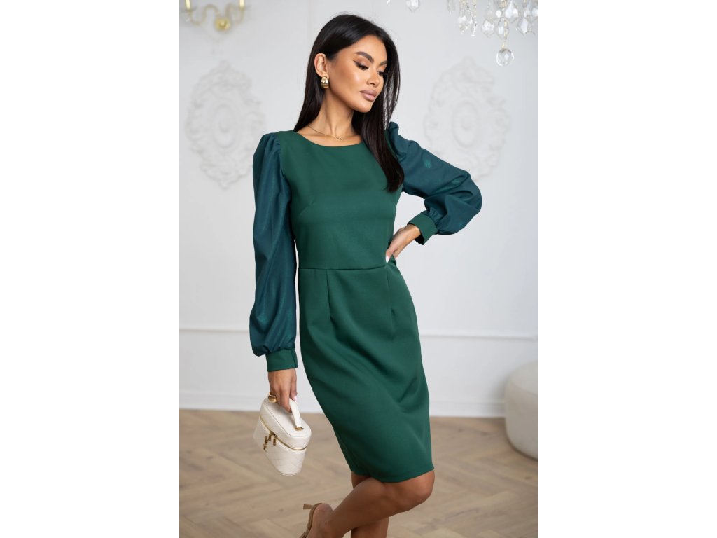 Zelené spoločenské šaty s dlhým rukávom – jemne trblietavé