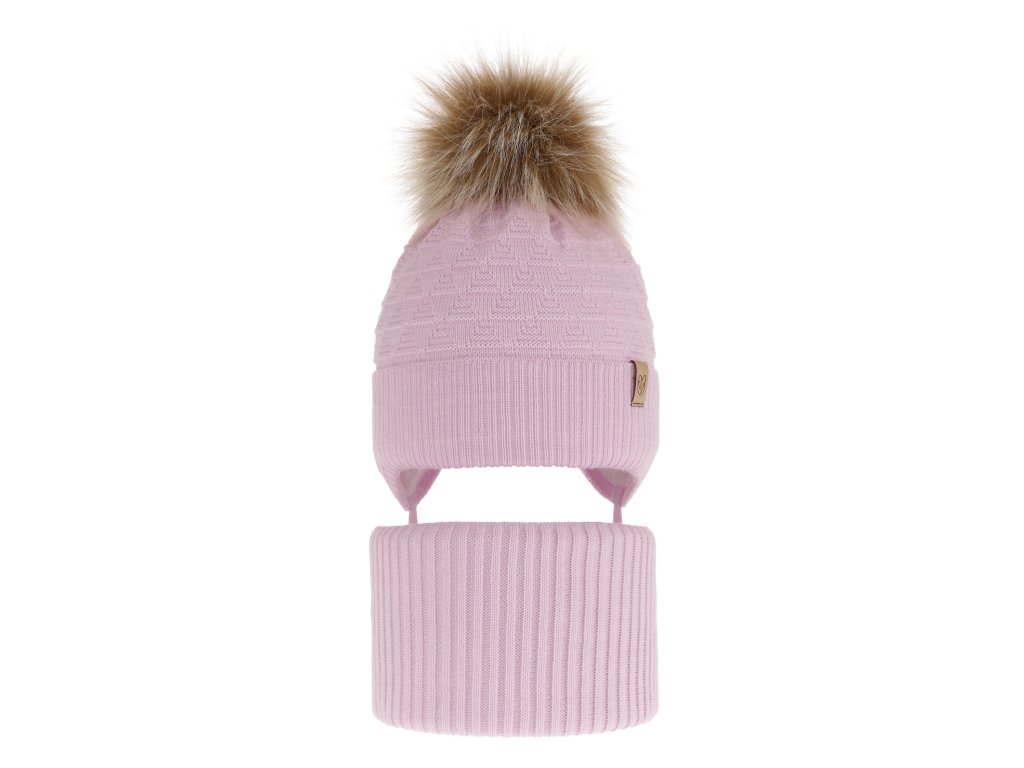 Zimný dievčenský komplet čiapka a nákrčník ružový s brmbolcom Egeria