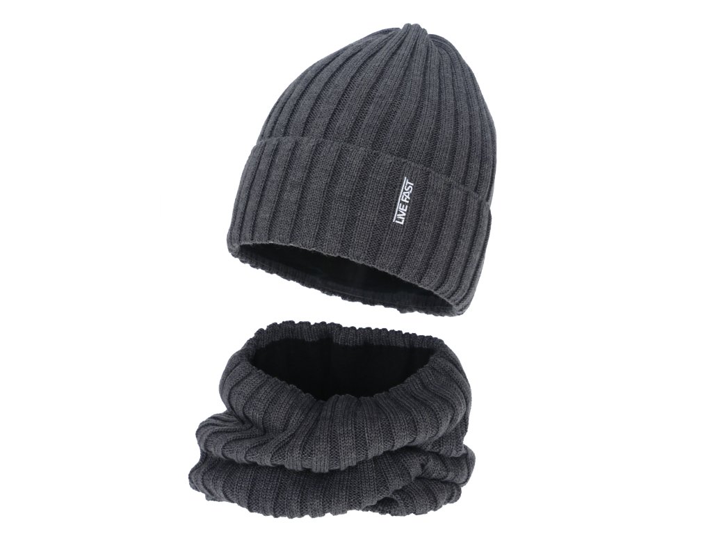 Zimný komplet Banasko – čiapka a nákrčník z merino vlnou a flísovou podšívkou